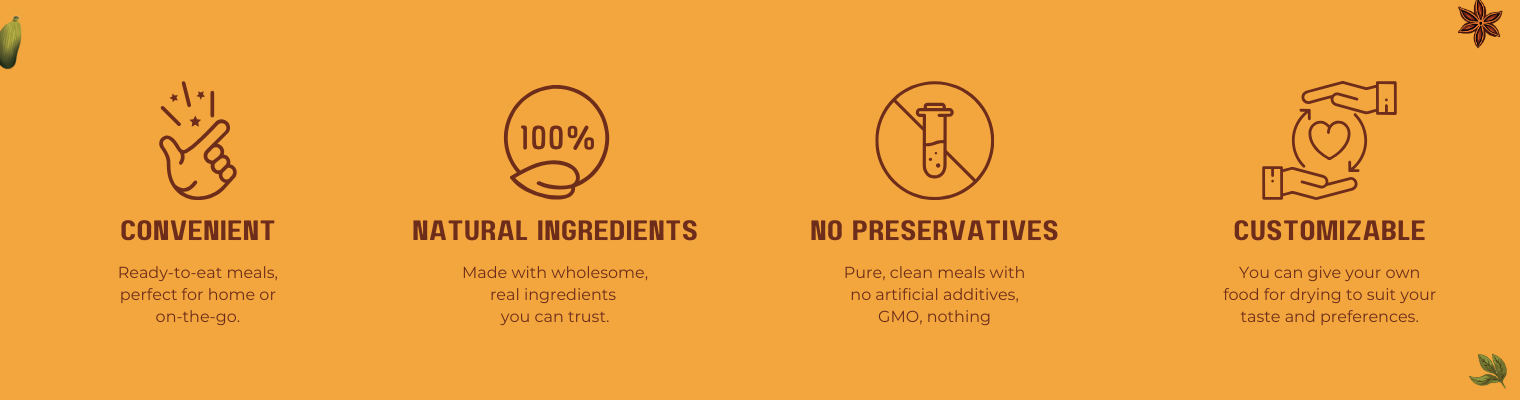 Expertise in Food Drying: With years of experience in dehydrating and freeze-drying uncooked and cooked foods, including vegetables, fruits, curries, and snacks.