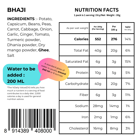 Delight in the aromatic spices and vibrant colors of Indian vegetables with our Sabjis category. Whether it's the tangy Aloo Gobhi or the flavorful Bhaji, our selection of sabjis ensures a taste of home wherever you go. Simply add hot water to enjoy these nutritious and delicious dishes, perfect for busy days or outdoor adventures.