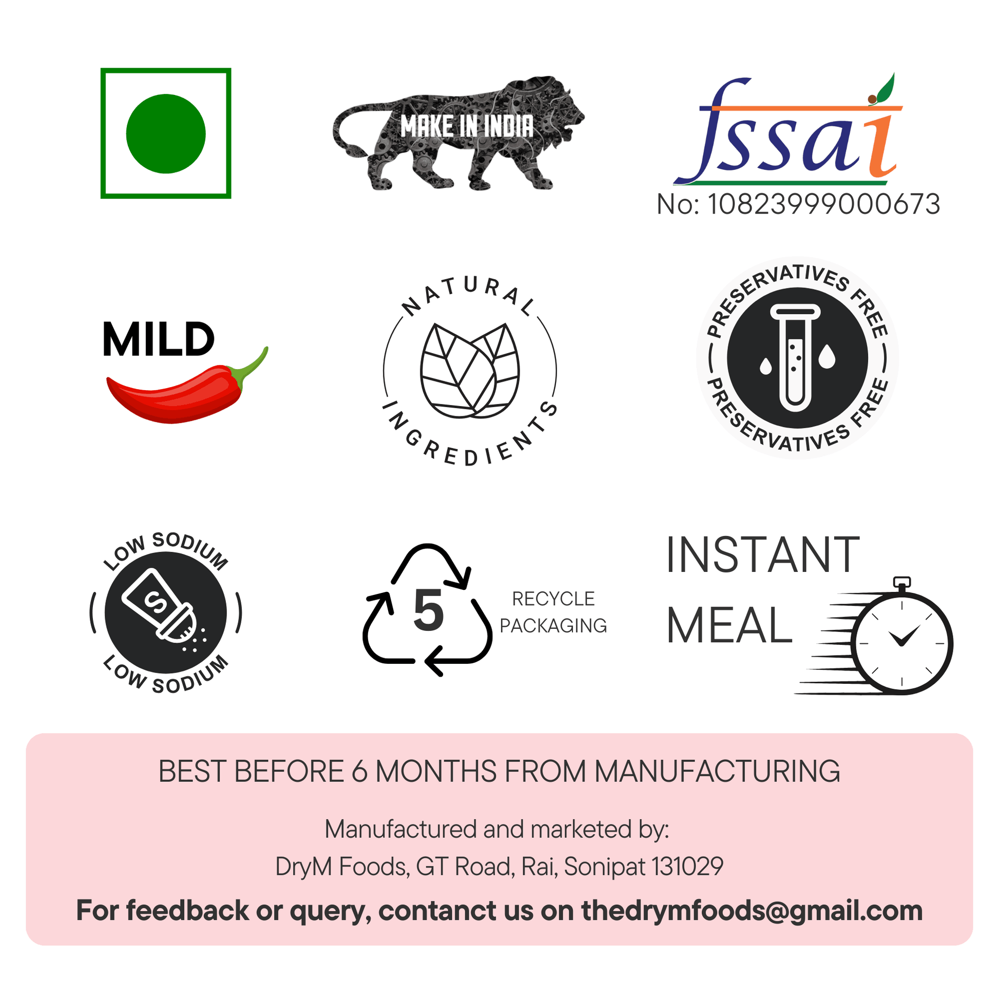 Delight in the aromatic spices and vibrant colors of Indian vegetables and dals with our Jain, Satvik and Vrath options. Travel endlessly without the tension of what to eat and constantly checking if the food is actually vegetarian! Simply add hot water to enjoy these nutritious and delicious dishes, perfect for busy days or outdoor adventures.