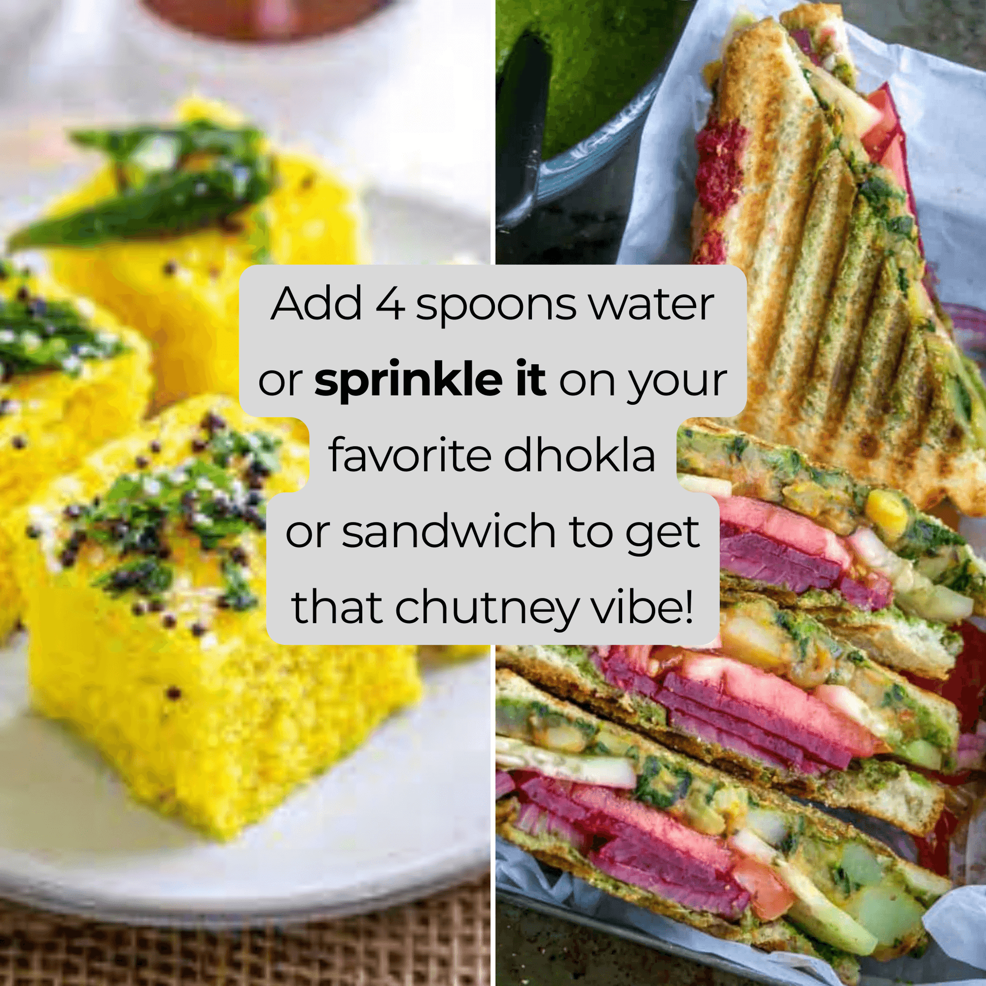 Enhance your meals with our Chutneys category, offering a selection of tangy and flavorful accompaniments such as Mint Chutney, Garlic Chutney, and Coconut Chutney. Light and easy to carry, our chutneys add a burst of taste to your dishes with just a spoonful, making them a must-have addition to your culinary adventures.