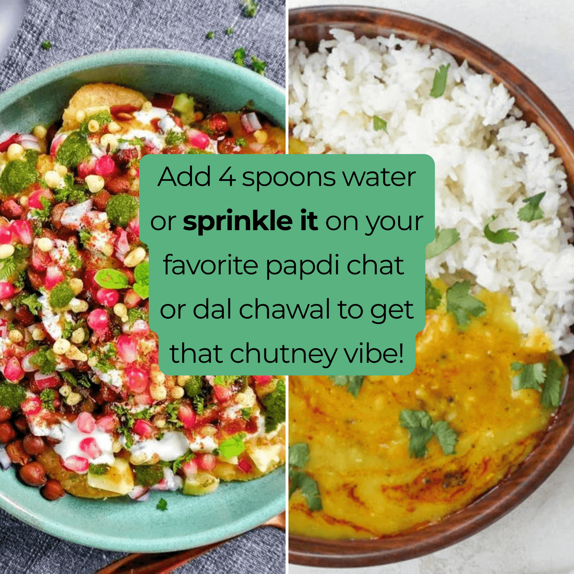 Enhance your meals with our Chutneys category, offering a selection of tangy and flavorful accompaniments such as Mint Chutney, Garlic Chutney, and Coconut Chutney. Light and easy to carry, our chutneys add a burst of taste to your dishes with just a spoonful, making them a must-have addition to your culinary adventures.