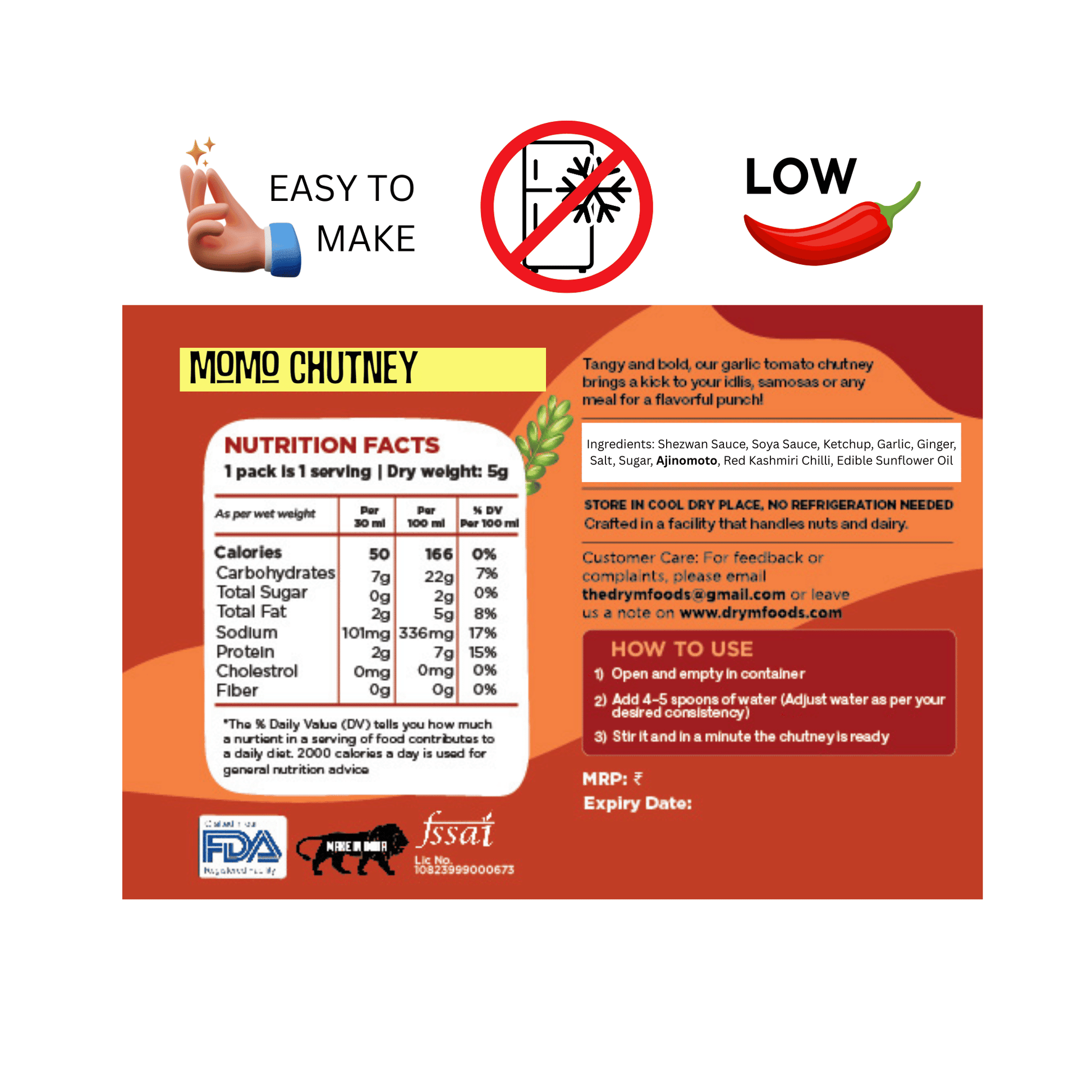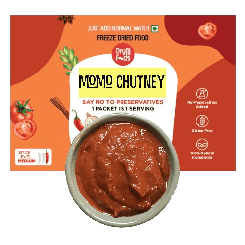 Level up your dumplings with our Momo Chutney — a spicy, tangy tomato-based chutney inspired by Himalayan street food. Made with sun-ripened tomatoes, red chillies, and garlic, and freeze-dried to perfection, it’s ideal for momos, rolls, fries, and sandwiches.
