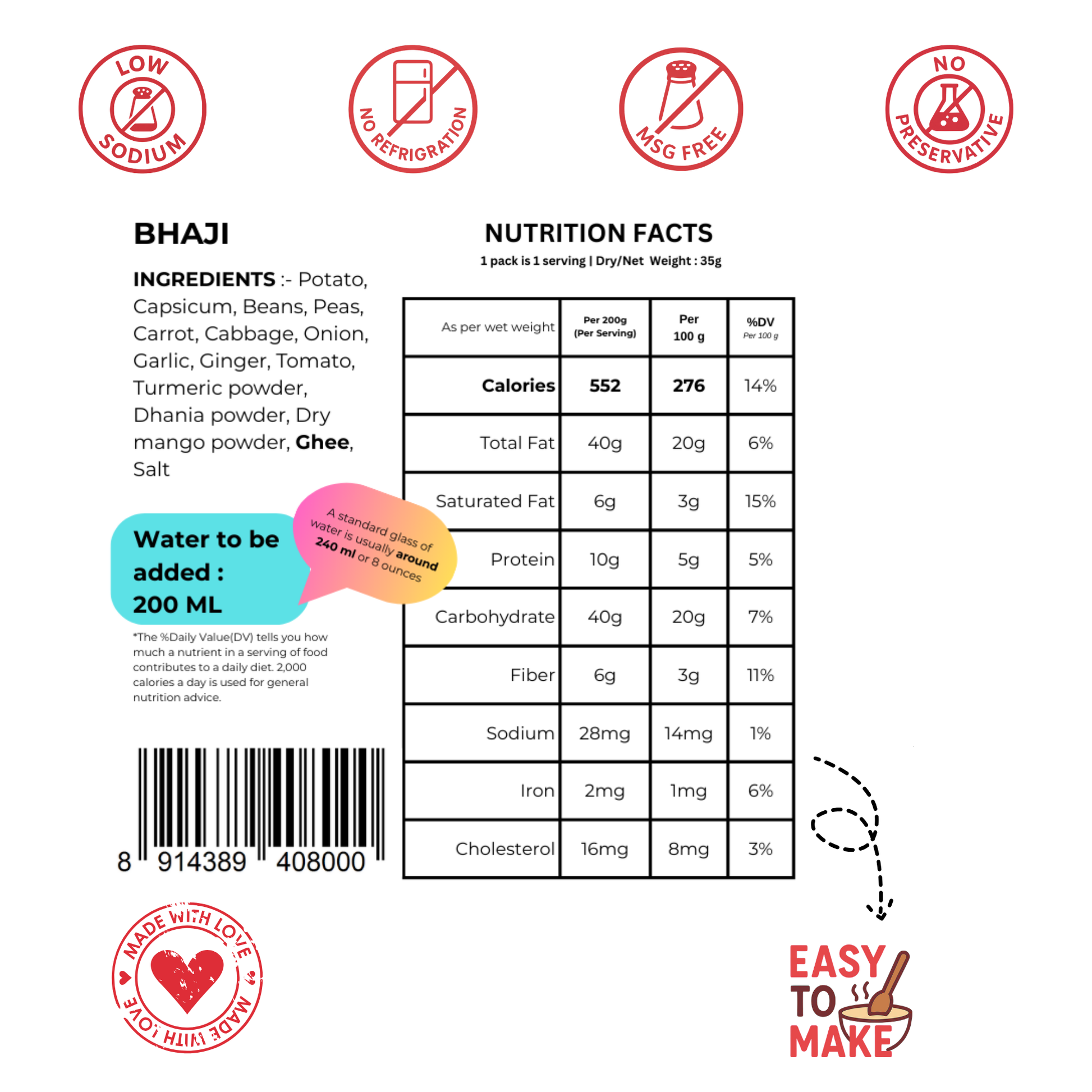 Delight in the aromatic spices and vibrant colors of Indian vegetables with our Sabjis category. Whether it's the tangy Aloo Gobhi or the flavorful Bhaji, our selection of sabjis ensures a taste of home wherever you go. Simply add hot water to enjoy these nutritious and delicious dishes, perfect for busy days or outdoor adventures.